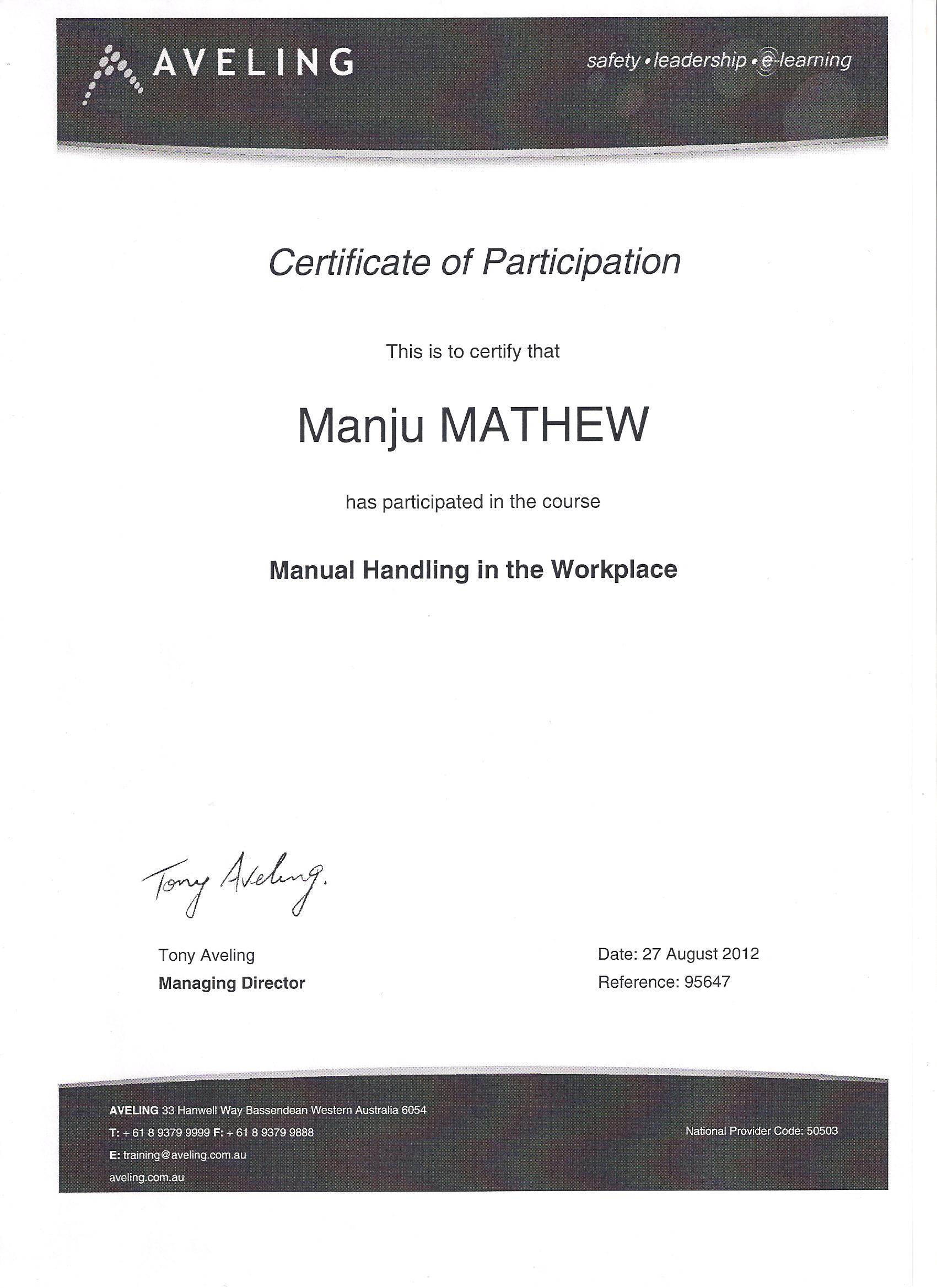 Avelings manual handling for health care workers course will teach you how to safely identify plan and perform manual handling tasks to assist in maintaining an injury free workplace. Receive an email with your login details. Our course will teach you how to safely identify plan and perform manual handling tasks to assist in maintaining an injury free workplace. Appointed persons play an essential role at mine sites by helping the principal employer manager or authorised person for whom they work to fulfil their compliance obligations under the western australia mines safety and inspection msi act 1994 and the wa mines safety and inspection regulations 1995.